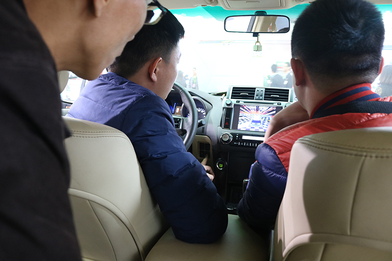 道可視這次展會主推的超清360度全景影像系統(tǒng),其清晰度達(dá)到1080P。不僅僅是清晰度的提升,更解決了因為夜視能力不足而困擾車主的夜間泊車、倒車難題;四路攝像頭實時錄像,智能震動鎖定技術(shù),3D全景泊車,24小時不間斷泊車監(jiān)控等功能吸引了一大批客商的駐足參觀,在展車體驗過程中對我們?nèi)诵曰腢I交互設(shè)計和便捷的功能操作贊賞有加。