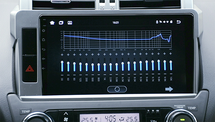 前文提到,道可視S3+音樂車機(jī)采用的是前裝車規(guī)級高端版24位DSP模組,它擁有36段EQ調(diào)節(jié),對于懂得調(diào)音的車主而言,它提供了可針對各個音域進(jìn)行調(diào)節(jié)的專業(yè)操控。