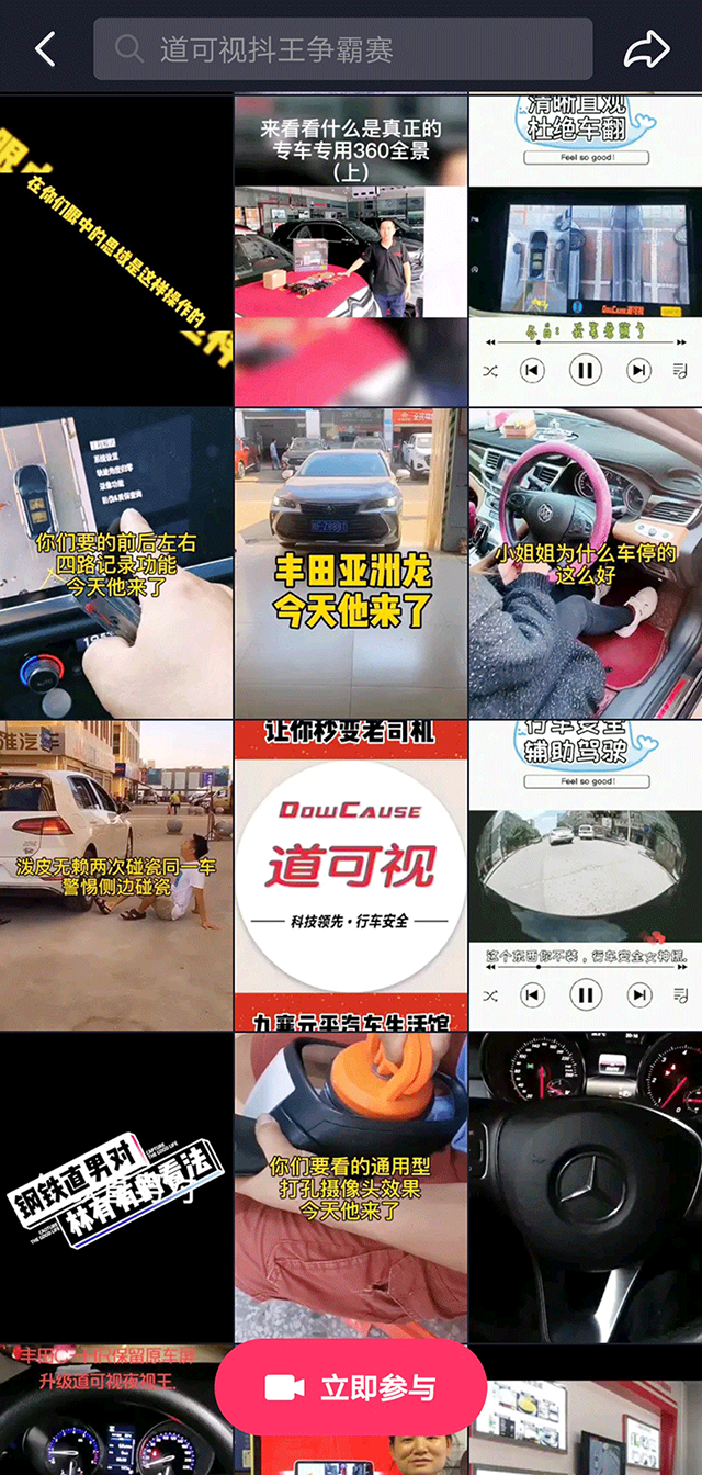 “抖王”爭霸賽是內(nèi)容創(chuàng)新新玩法的先行者和探索者,道可視用簡單、直接的方式結(jié)合抖音的魔性平臺,成功引爆了這次精彩活動,在給用戶提供了娛樂體驗的同時,也讓品牌得到了高度曝光,引發(fā)大家對于行車安全的關(guān)注。