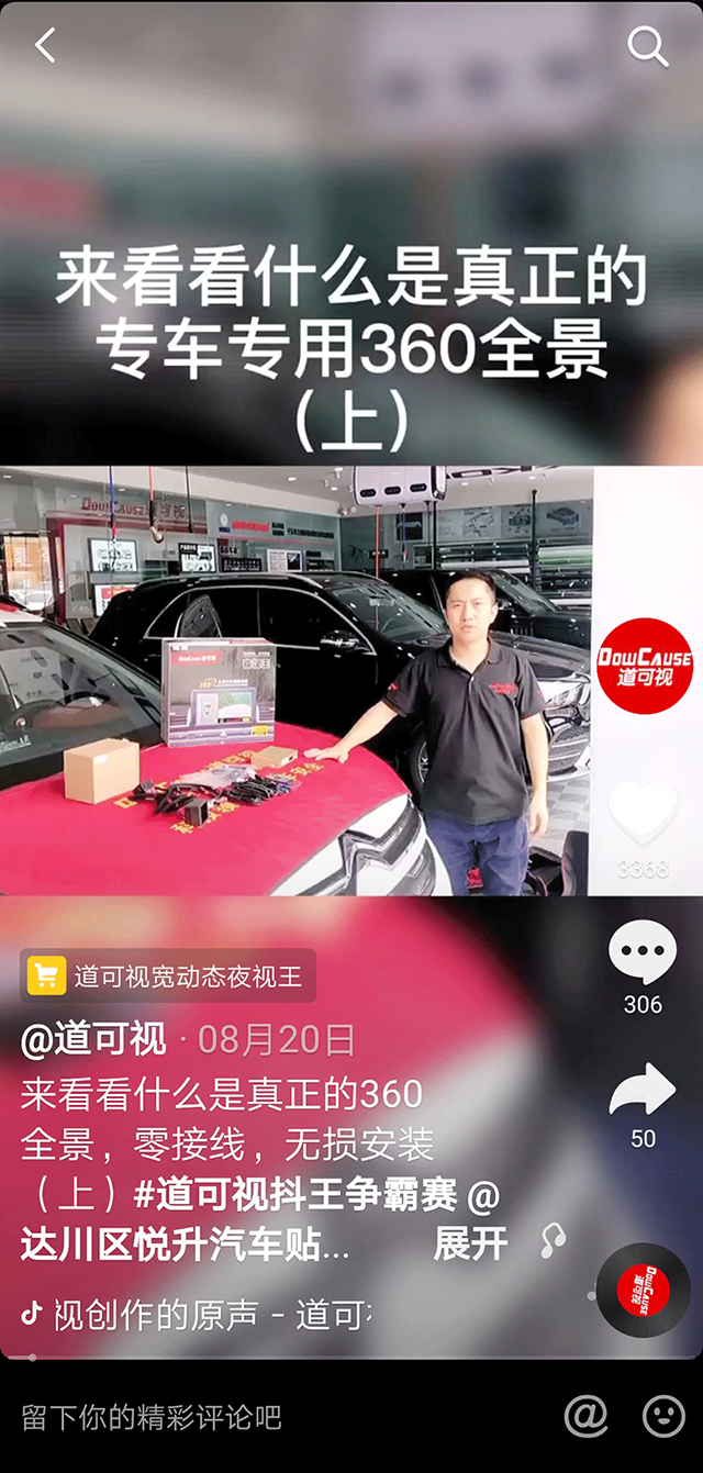 在參賽的作品中,其中“來看看什么是真正的360全景,零接線、無損安裝”、“叫代駕倒車遇到前教練,看教練如何豪橫的”、“30臺消防車道可視全部安裝上了,特種作業(yè)車輛首選!”等原創(chuàng)視頻以較高的點贊量成為獲得本屆“抖王”稱號,并贏得活動的現(xiàn)金獎勵,發(fā)布作品的代理商也因此獲得超高人氣。