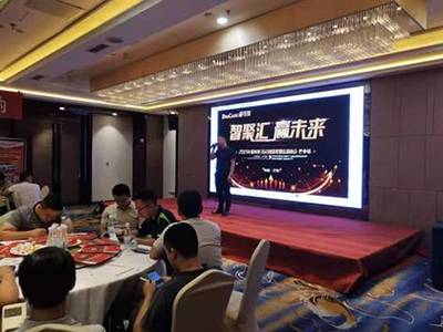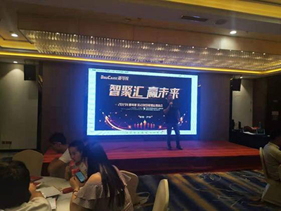 隨后,道可視大區(qū)經(jīng)理陶佩上臺,陶佩經(jīng)理重點針對現(xiàn)場眾來賓普遍關(guān)心的智慧聯(lián)盟店招商政策做了細致化的講解。