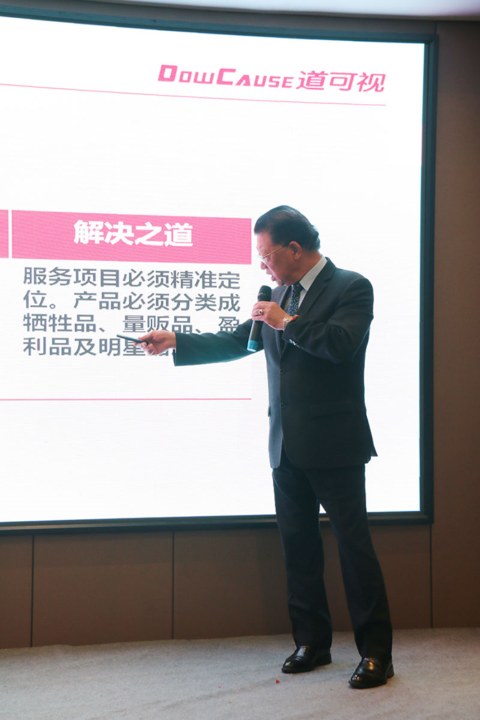 針對(duì)當(dāng)下終端門店運(yùn)營(yíng)者所面臨的種種困惑,蔡老師也提出了解決之道,他指出門店有服務(wù)項(xiàng)目必須精準(zhǔn)定位,產(chǎn)品必須分類成犧牲品、量販品、盈利及明星產(chǎn)品,同時(shí),如果說門店有20%的員工劣根性很強(qiáng),無論如何都無法改變,老板就必須使出殺手锏,不能再將這樣的員工留在店內(nèi)等等。